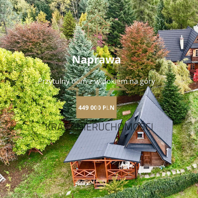 16Na sprzedaż przytulny drewniany dom o powierzchni 70 m2 położony w miejscowści Naprawa (gmina Jordanów) u podnóża ...